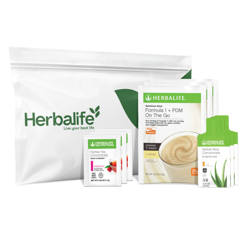 Your feel-good products are here! The Classics Discovery Kit is packed with the most popular, delicious and nutritious Herbalife ® products, ideal for supporting your goals. Whether it’s managing your weight, supporting digestion or energizing your routine, these portable packets are the perfect fit for your on-the-go lifestyle. Key Benefits Enjoy more energy and sustain lean muscle with 24 g of high-quality protein per serving from Formula 1 Healthy Meal Nutritional Shake Mix and Protein Drink Mix Jump-start thermogenic (metabolic) activity and get antioxidant support with Herbal Tea Concentrate *† Support nutrient absorption and digestive function with Herbal Aloe Concentrate Fast Facts † Herbal Tea Concentrate provides 85 mg of caffeine per serving. It is recommended that products containing caffeine be used by healthy adult consumers and not recommended for those sensitive to caffeine. Pregnant or nursing women, individuals with medical conditions, or those taking medications should consult with a health care professional before use. Usage Blend or stir one packet of Formula 1 + PDM On The Go with 8 oz. of water or nonfat milk Add one serving of Herbal Tea Concentrate to 6 to 8 fl. oz. of hot or cold water Mix one packet of Herbal Aloe Concentrate with 6 to 8 fl. oz. of cold water *Caffeine is known for its natural thermogenic (metabolism-boosting) benefits and green tea for its antioxidant properties.